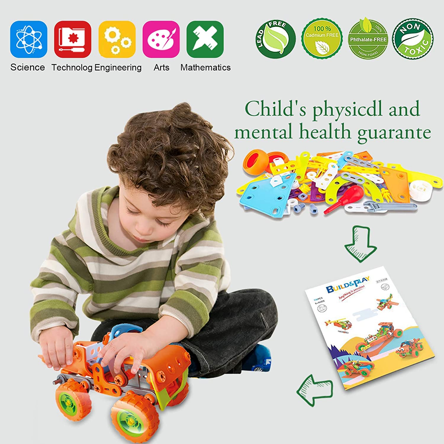 STEM Building Toys Learning Kit, 10 in 1 Construction Blocks for Preschool Kids, 108 Pieces Engineering Toys Creative Set Gift for Boys and Girls Age 3,4,5,6,7,8 Years Old