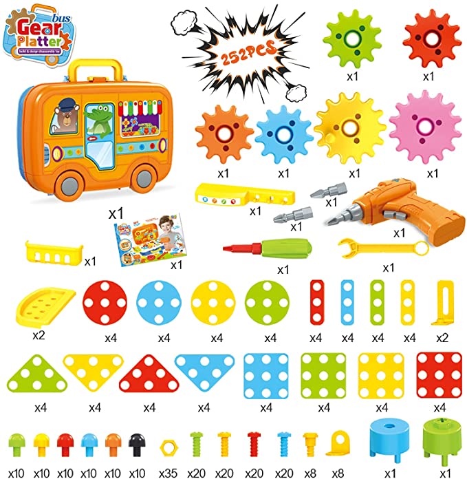 Building Blocks Toy Set with Electric Drill, Kids DIY STEM Building Toys Set, 252pcs Educational Preschool Learning Toys for Boy & Girl 3-7 Years Old